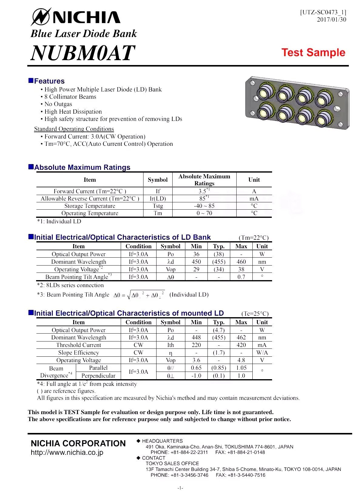 | Product Name and Model | Nichia NUBM0A Laser Diode Bank |