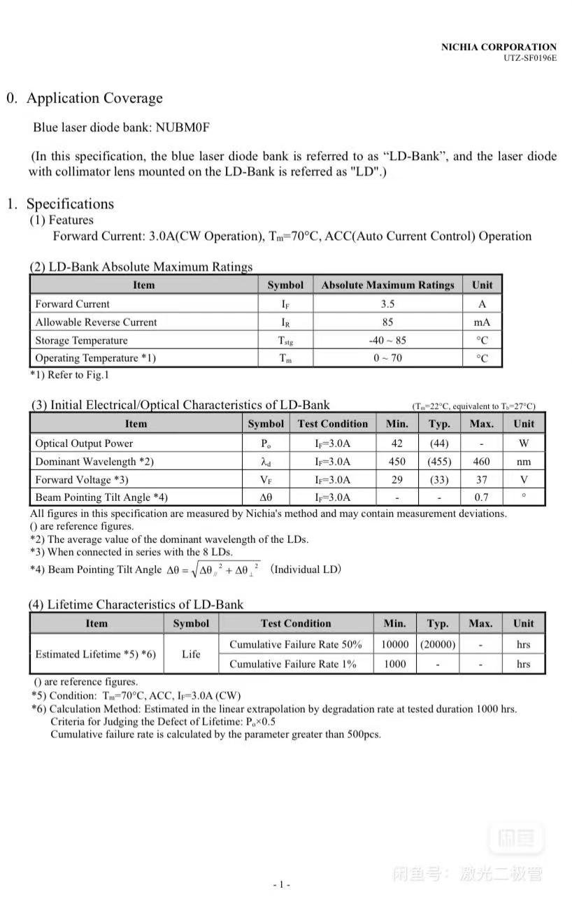 | Product Name and Model | Nichia NUBM0F Laser Diode Module |
