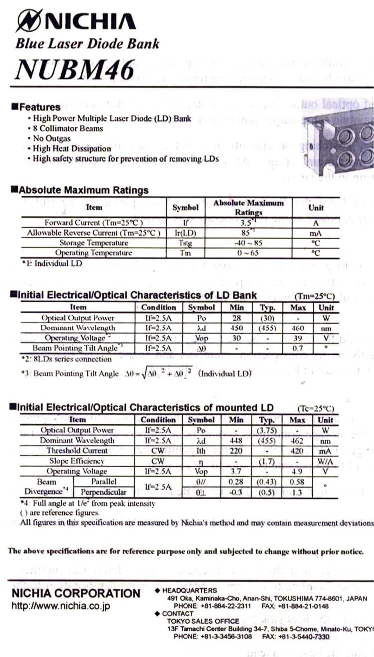 | Product Name and Model | Nichia NUBM46 Blue Laser Module |