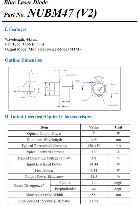 | Product Name | NICHIA NUBM47 Blue Laser Diode |