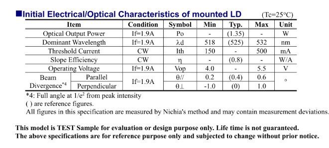 NICHIA NUGM04 525nm 1.35W Green Laser Diode Overview
