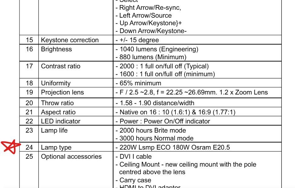 | Lamp Type / OEM | OSRAM E20.5 (Bare Bulb) – 200W / 180W ECO |